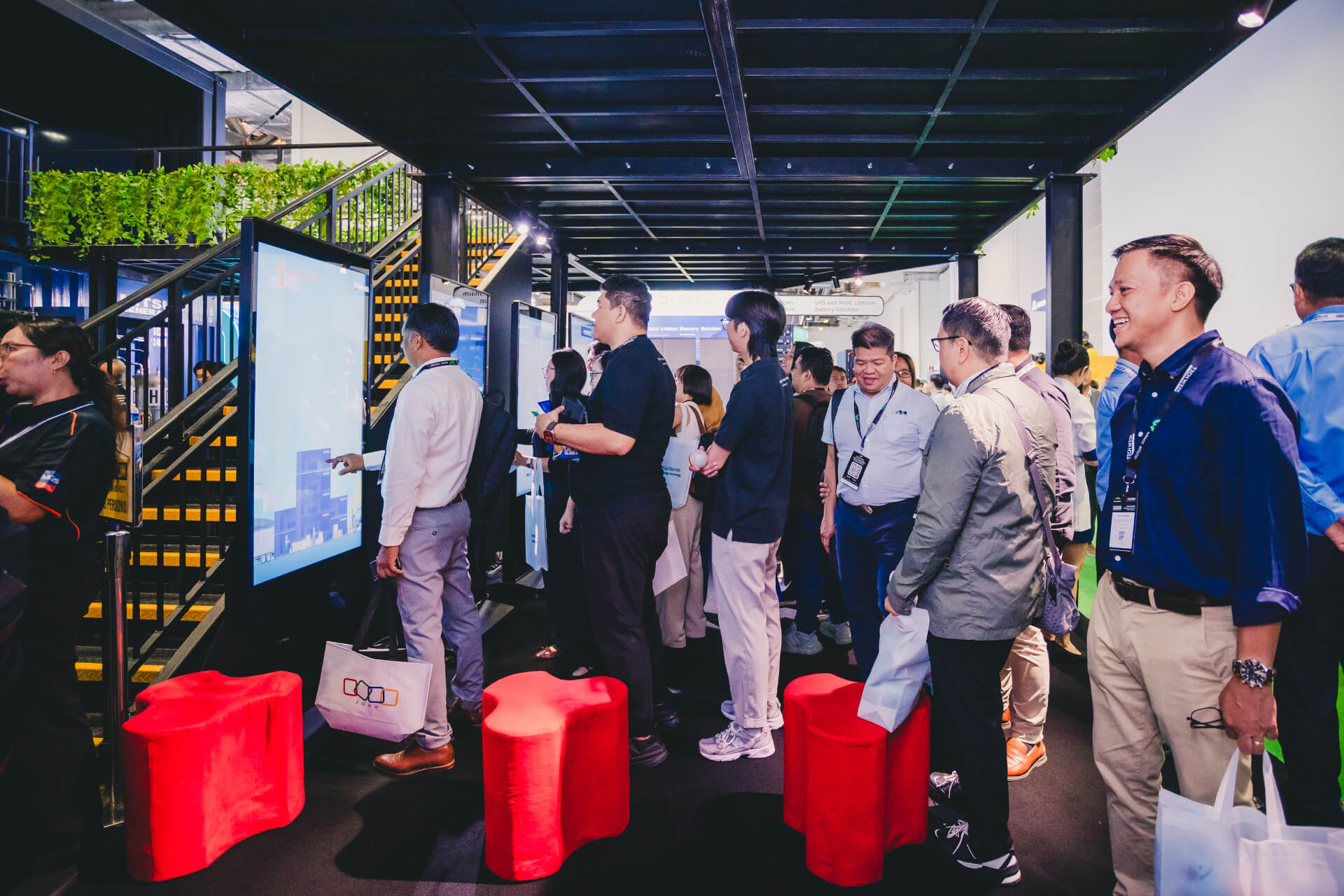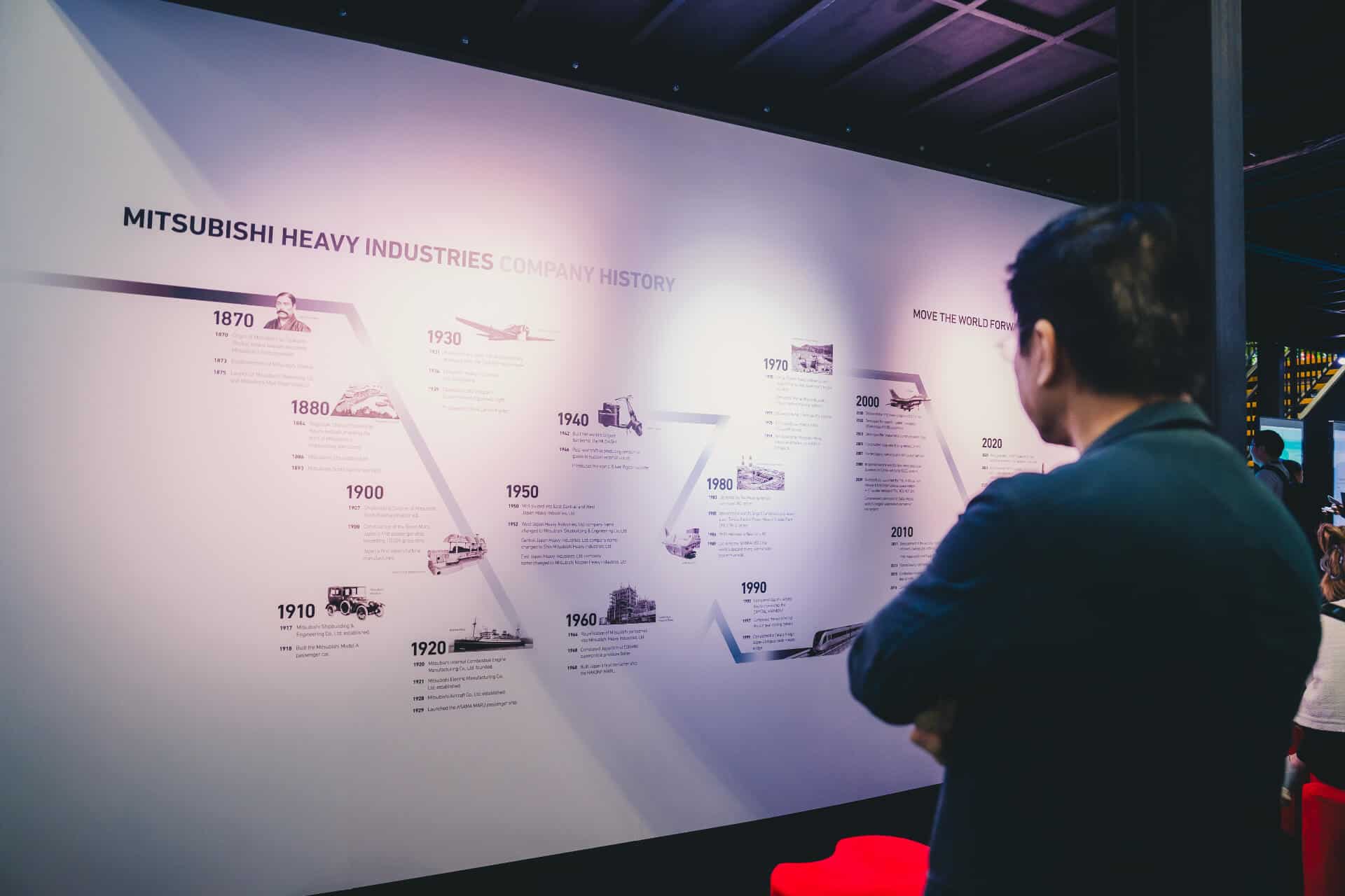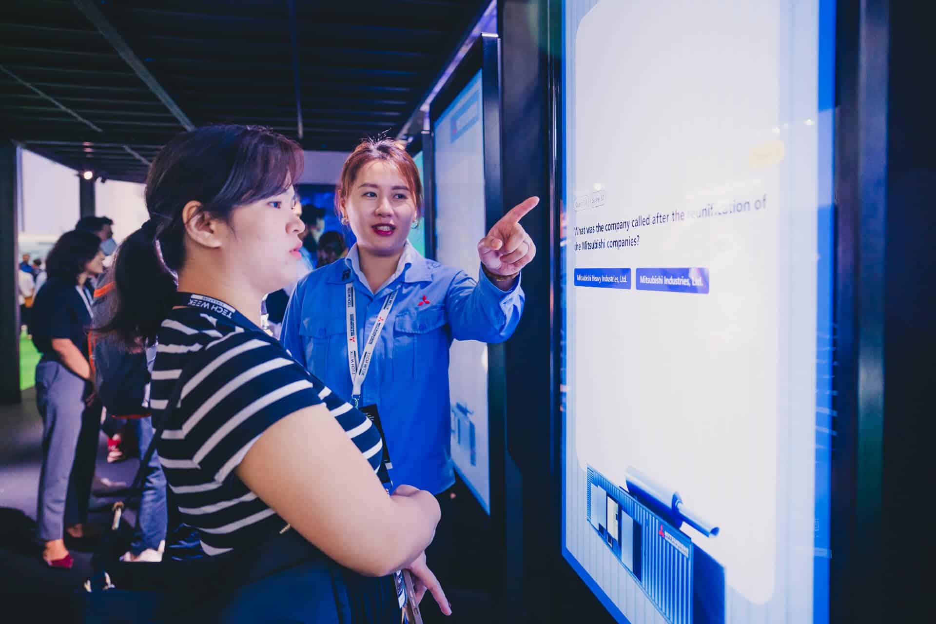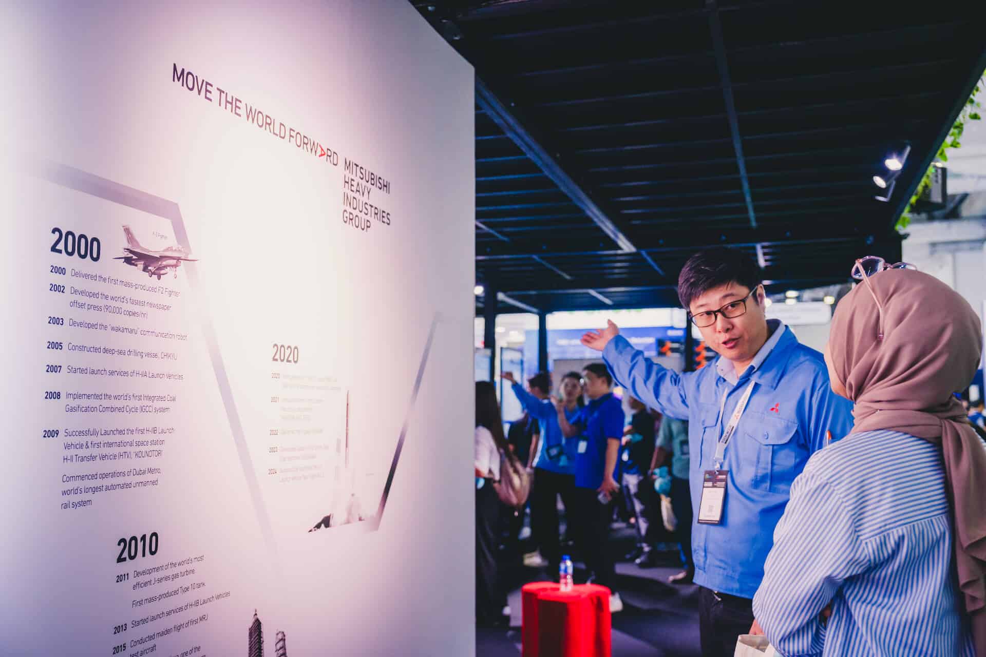 The Mitsubishi Heavy Industries two-storey innovation booth featuring the MGS2500R containerized generator at Data Centre World Asia.